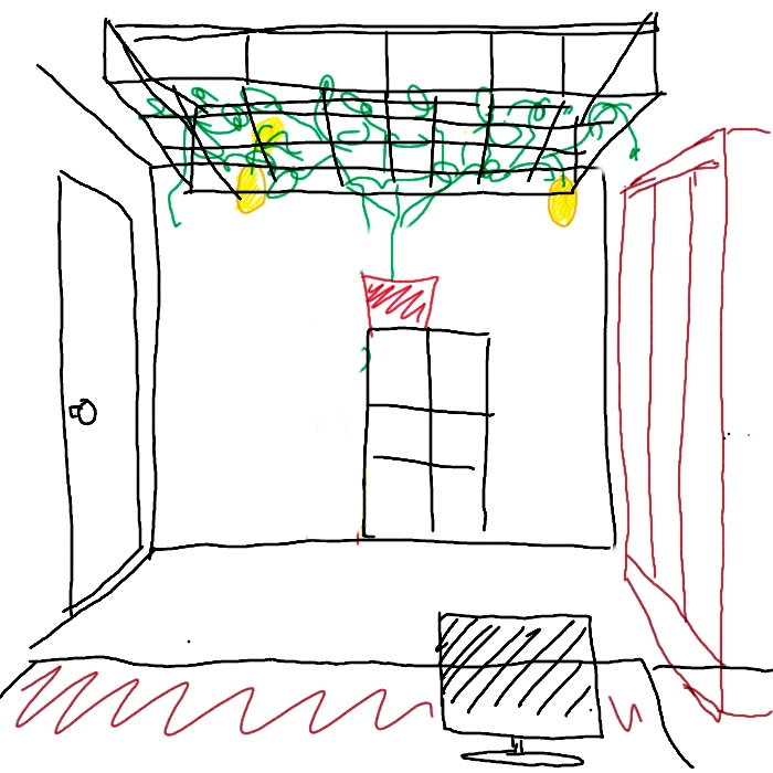 집 안에서 식물을 키울 공간을 찾다가 천장에 주목하게 되었다. 천장은 보통 전등만 있을 뿐 별다른 구조물 없이 비어있는 공간이다. 천장을 잘 활용한다면 천장 넓이의 텃밭을 가질 수 있는 것이 아니냐는 생각이 들어 천장에서 식물을 기르는 것을 시도하게 되었다.
