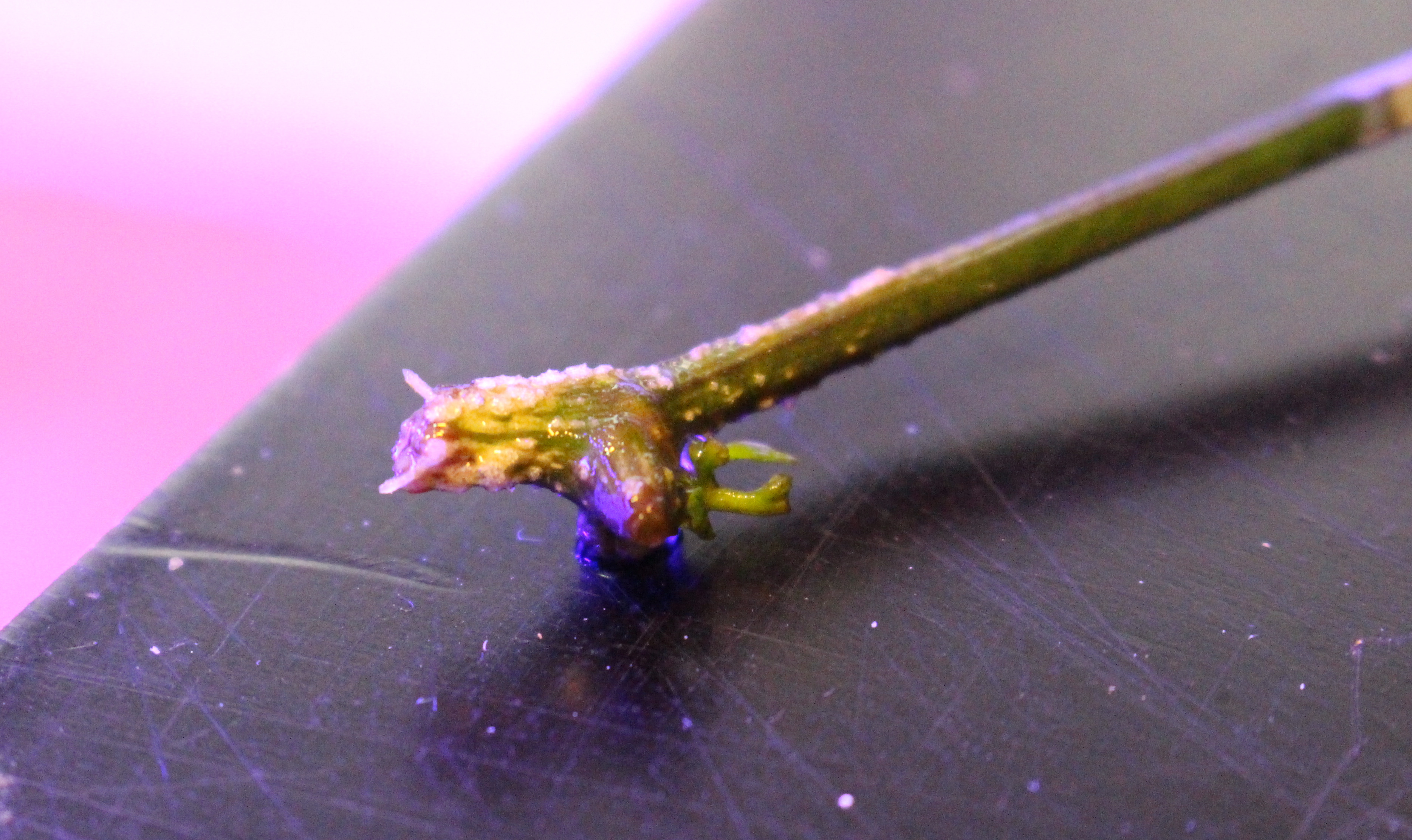 5일쯤 지나서 양액에 잠긴 부분에서 하얀 돌기가 생겼습니다. 여기에서 뿌리가 나오는 것일까요?