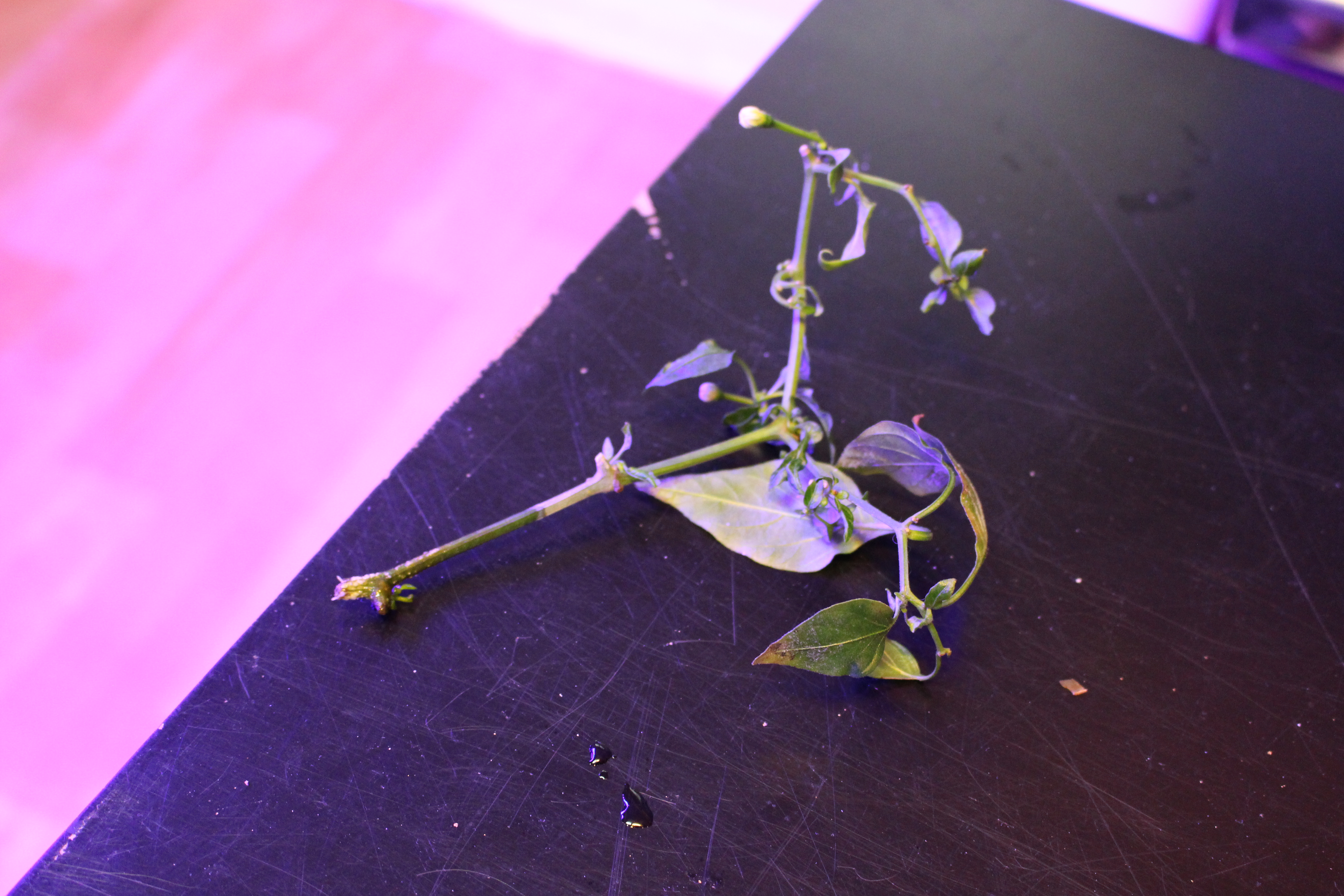 (1) 꽃이 피고 있는 고추의 가지를 꺾꽂이했을 때 뿌리가 나면서 살아났다.