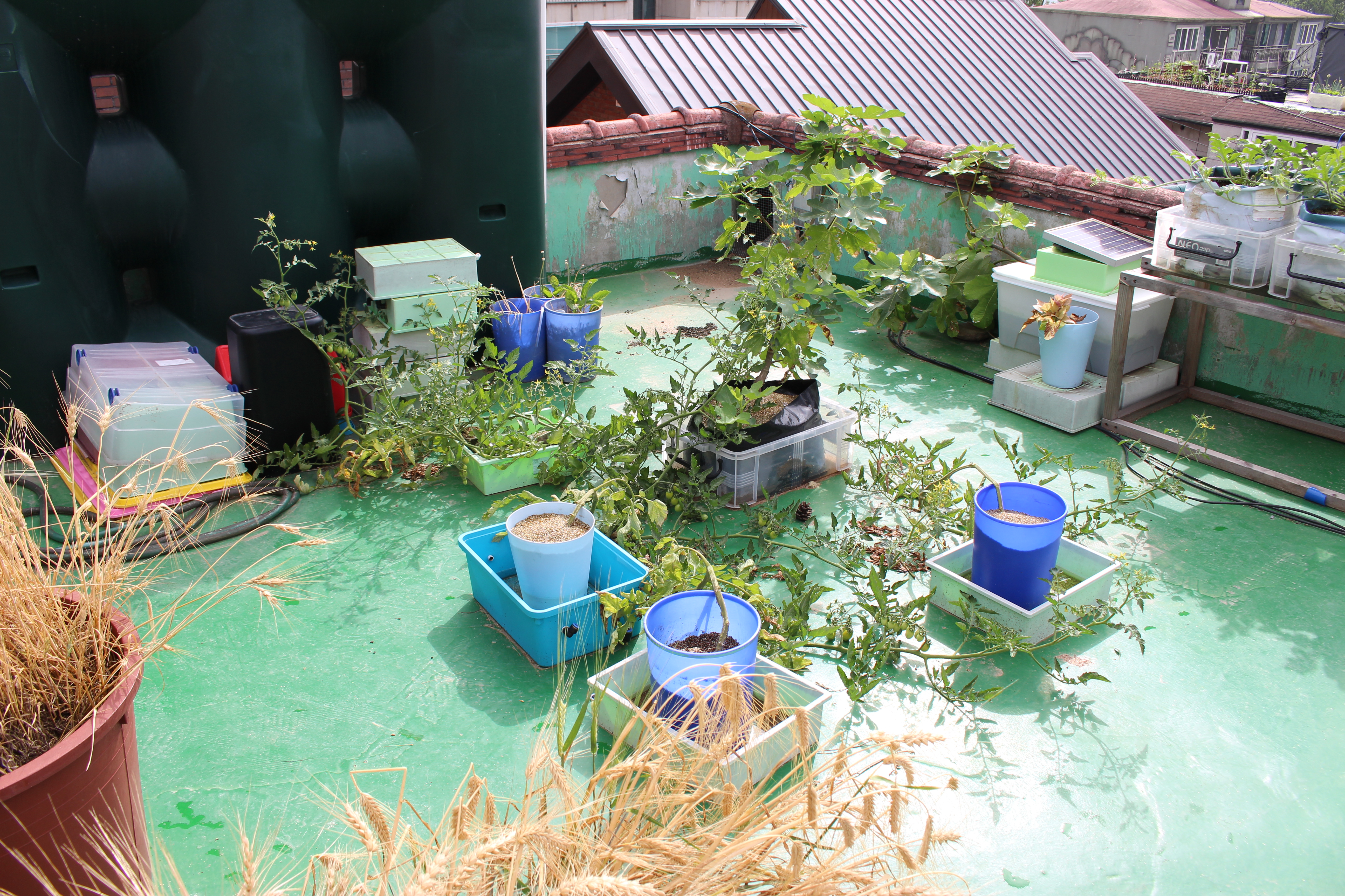 금년 저희집 옥상에서 식물 기를 계획을 세웠습니다. 작년에는 처음으로 도전한 수박, 옥수수, 무화과가 잘 되어 맛있게 먹었습니다. 금년은 추가로 딸기 맛을 보고 싶네요. 사진은 모두 인공배지에 양액을 스며들게 하여 기르는 방식입니다. ‘고형배지경’이라고 합니다. 겉보기에는 토양에서 키우는 것과 비슷합니다만 양액재배(수경재배)에 속합니다. 안방에서 재미삼아 심어본 감이 싹이 나서 이것도 옥상에서 키워보려고 합니다.