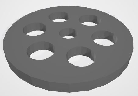 위의 문제를 피하기 휠에 원판용 돌출부와 타인용 돌출부를 따로 두었습니다. 또 실제 원판은 구멍이 나 있기 때문에 원판은 구멍을 그대로 사용하고 휠의 돌출부가 원판의 구멍으로 들어가는 방식으로 했습니다.
