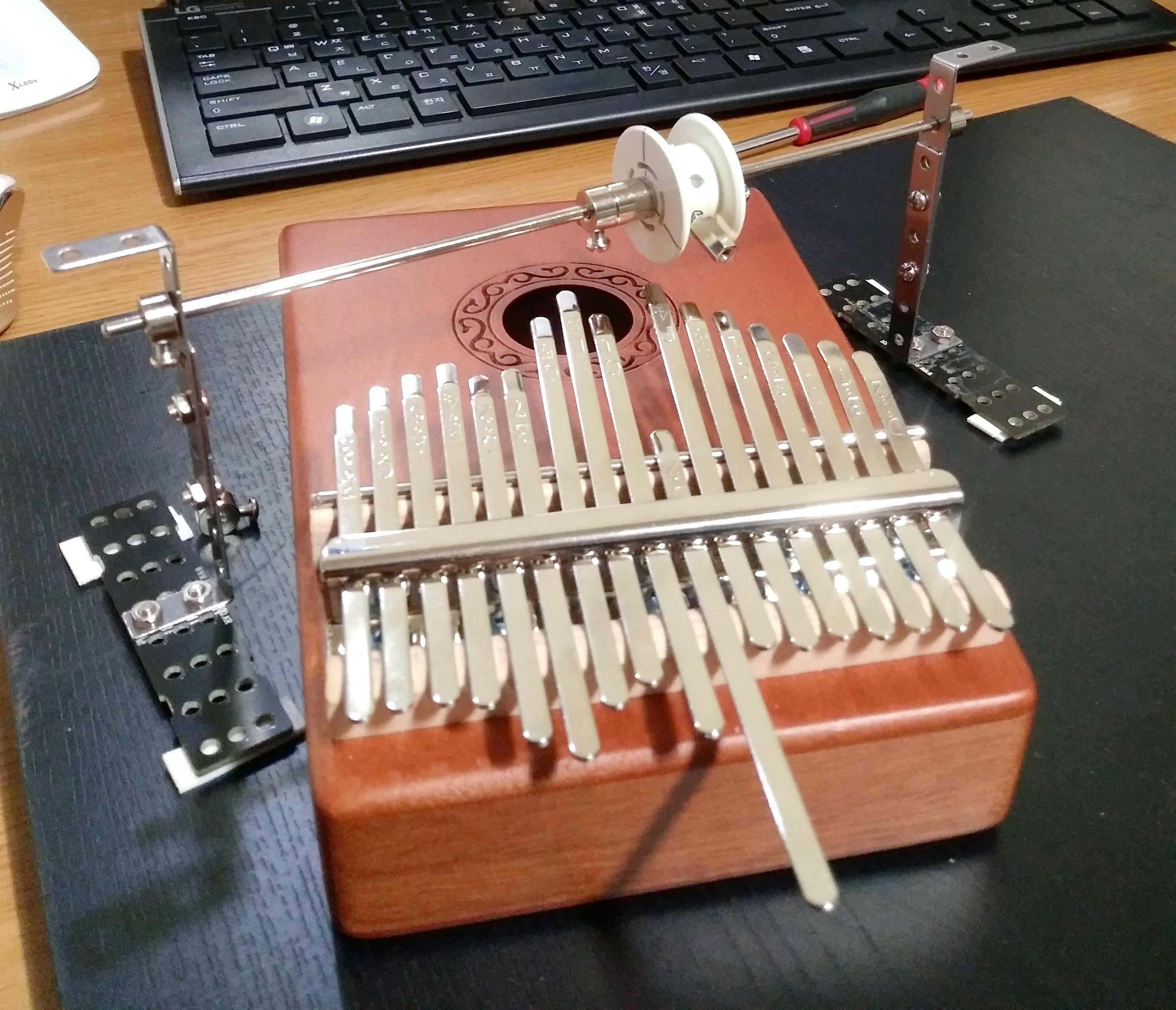 미아사거리 근처의 삼계탕집에서 만났습니다. 이야기의 골자는 칼림바(kalimba)와 구멍뚫린 원판으로 오르골을 만드는 것이었습니다.