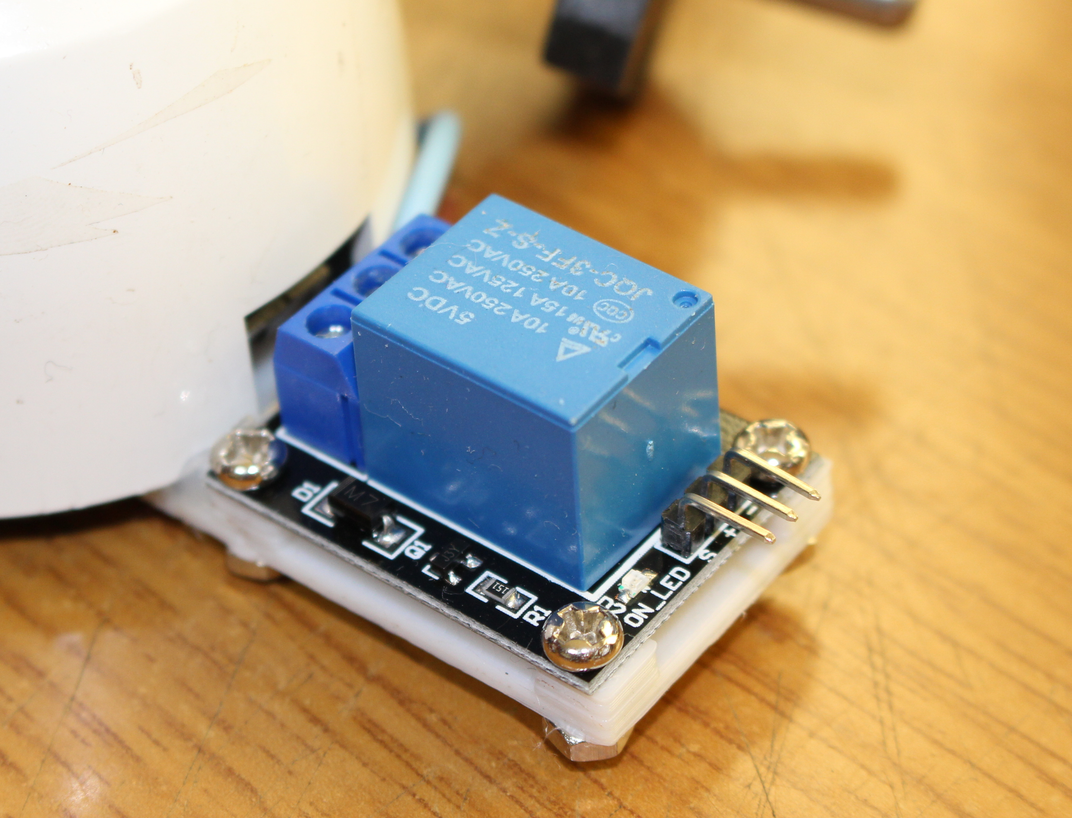 4. 드릴 드라이버로 릴레이를 고정할 구멍 4개를 뚫습니다.