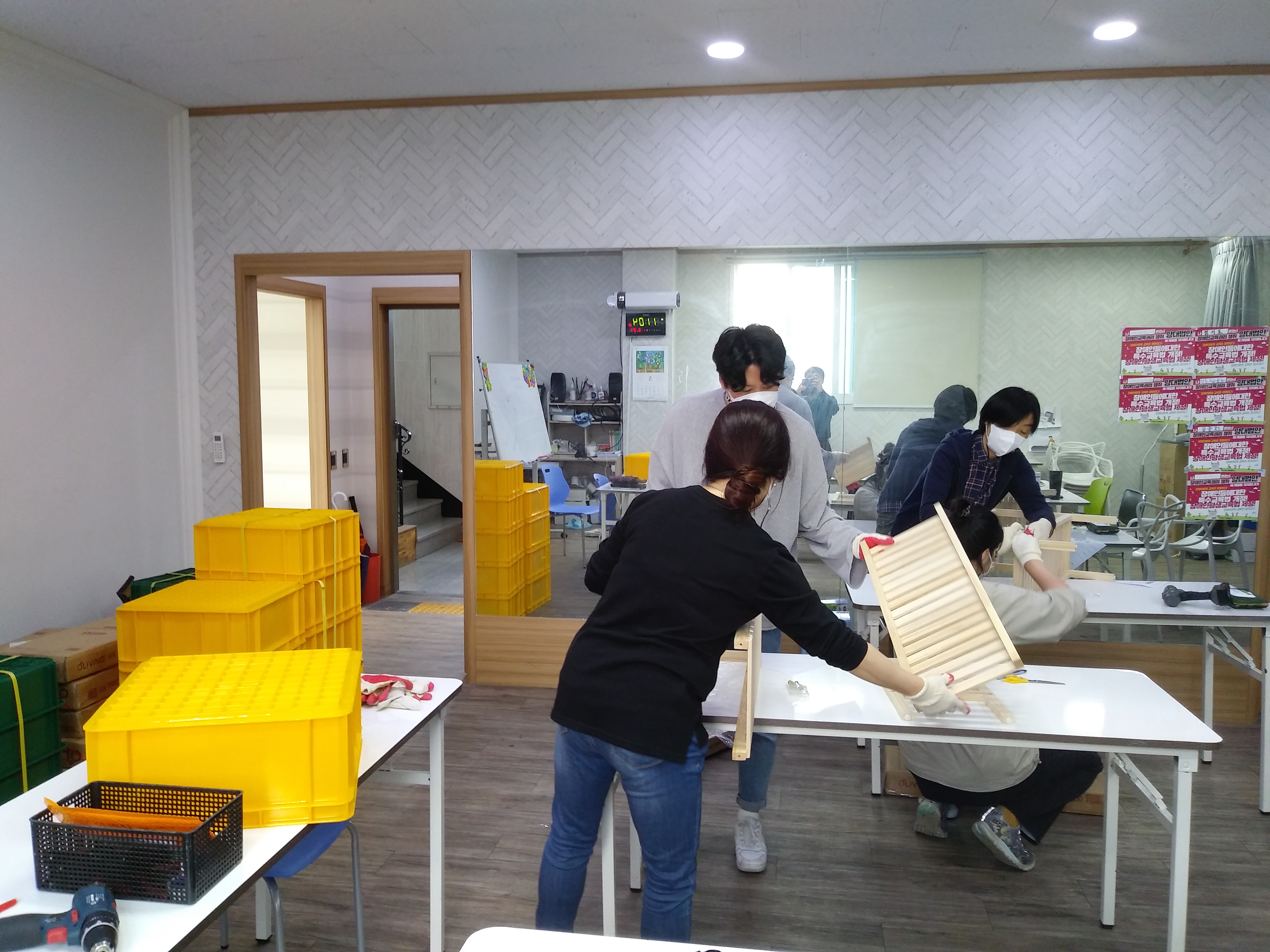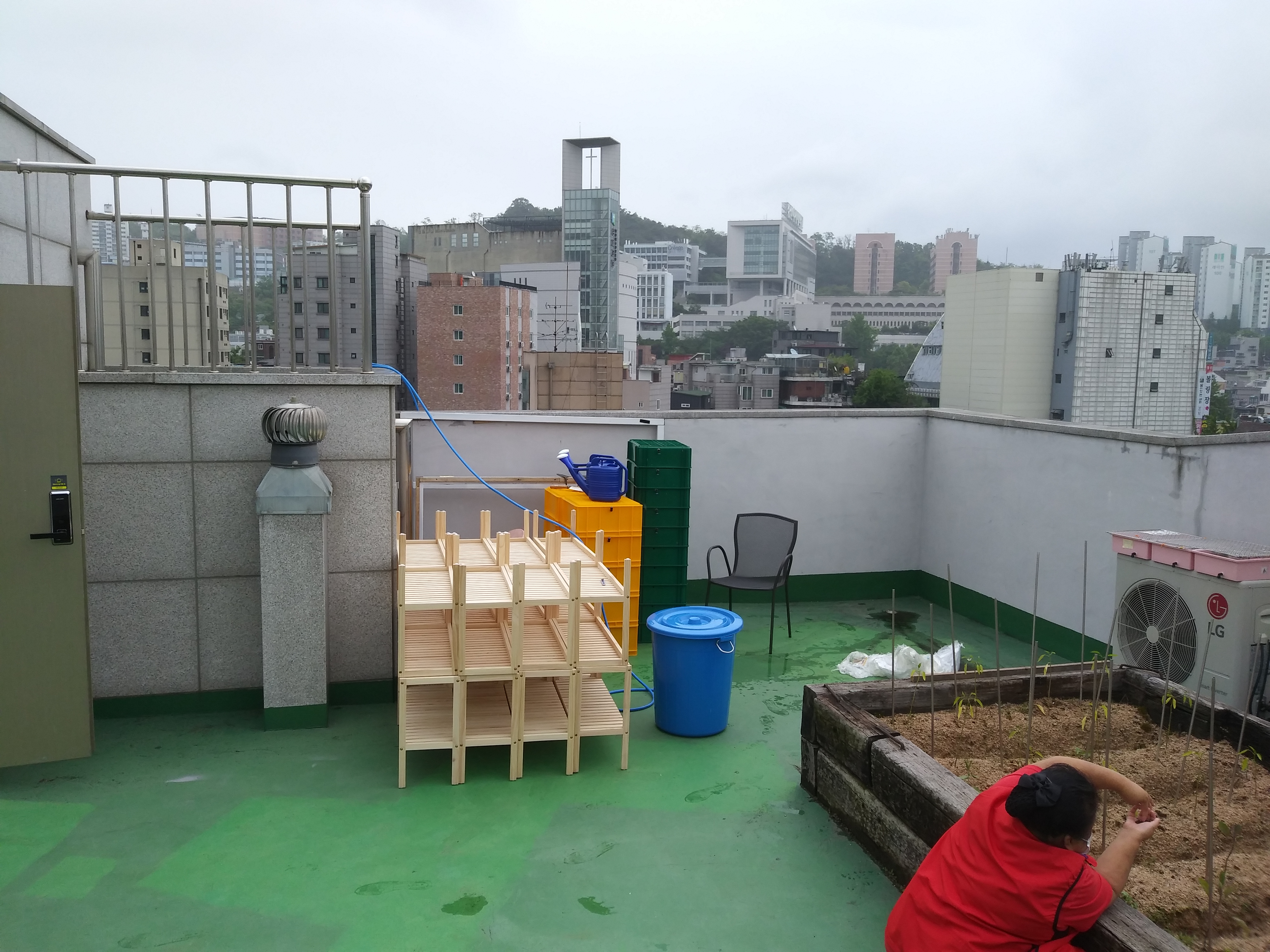 오늘 너른마당 선생님과 성수네 회원이 함께 너른마당 옥상에 설치할 수경재배기의 틀과 트레이를 만들었습니다. 옥상텃밭의 흙이 너무 척박하여 비료도 뿌려주었습니다.