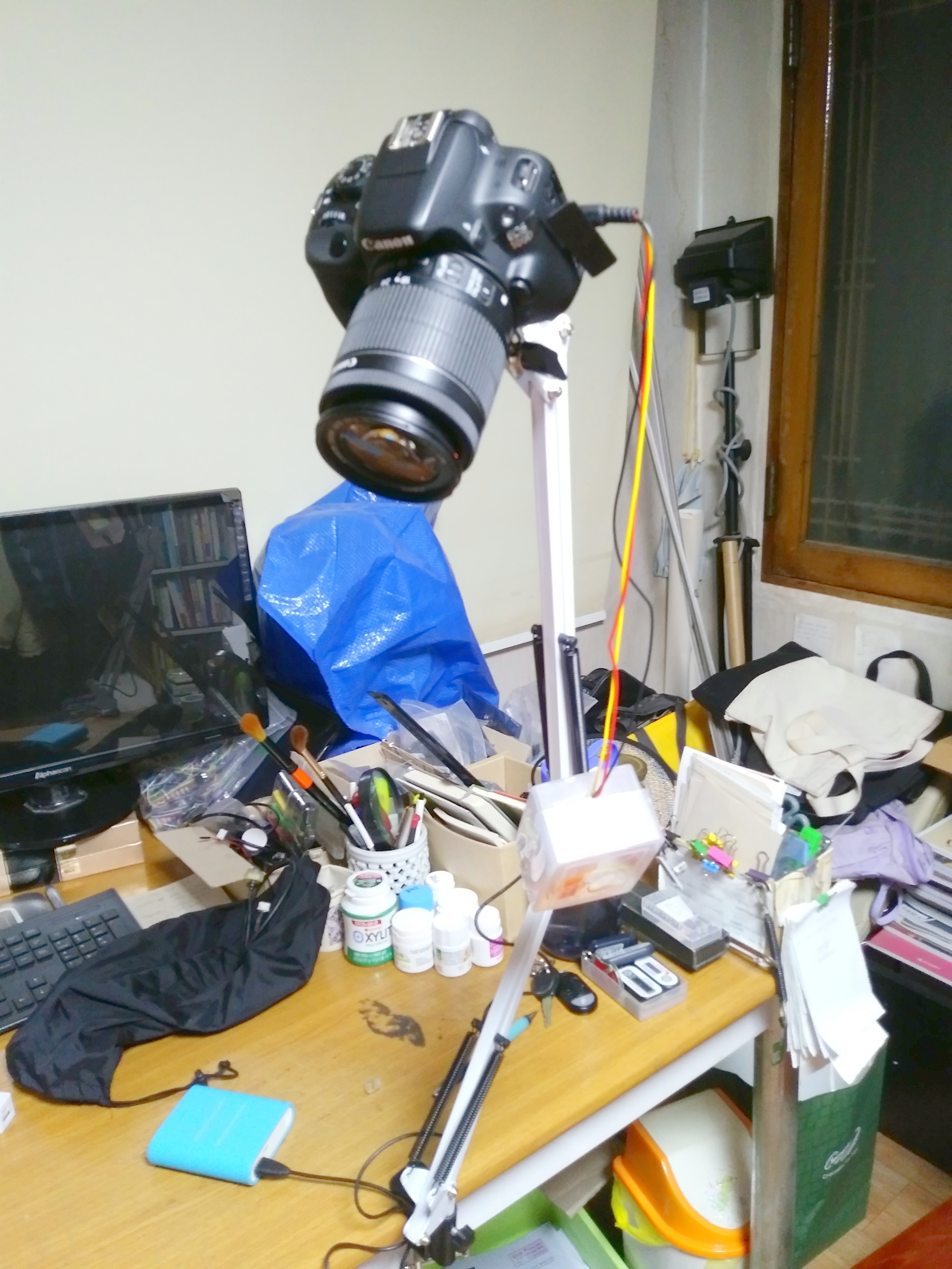 촬영장치는 캐논 EOS 100D, 자작 무선 릴리즈, 리모콘으로 구성되어 있습니다.