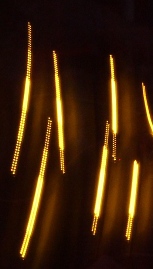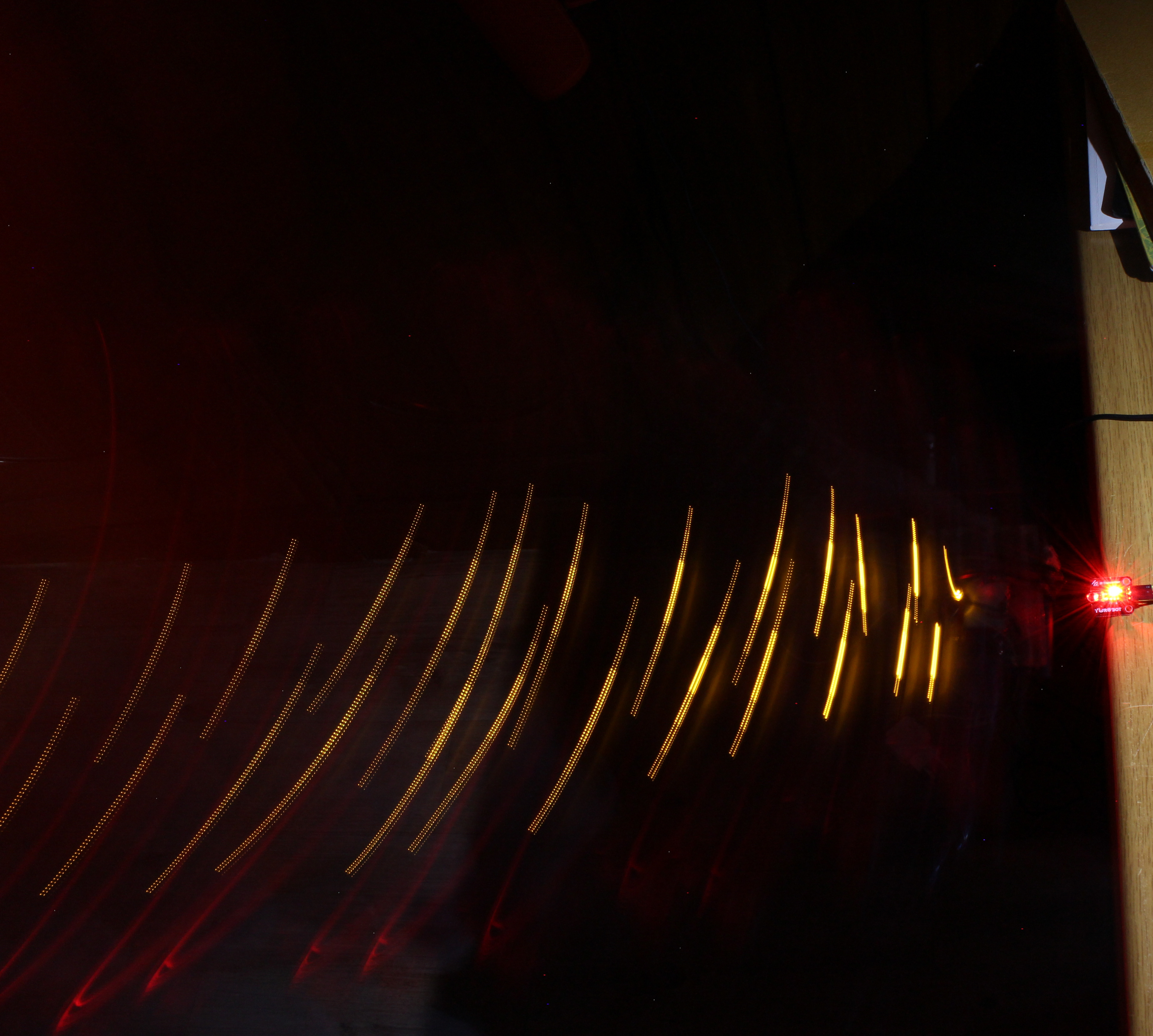 LED 불빛을 확대해 보았습니다. LED 밝기 조절을 PWM으로 하다보니 움직일 때 깜빡임이 보입니다. 이것은 예전에 라이트 페인팅을 하면서 경험했던 일입니다. 아래 자료에 위와 유사한 패턴을 볼 수 있습니다.