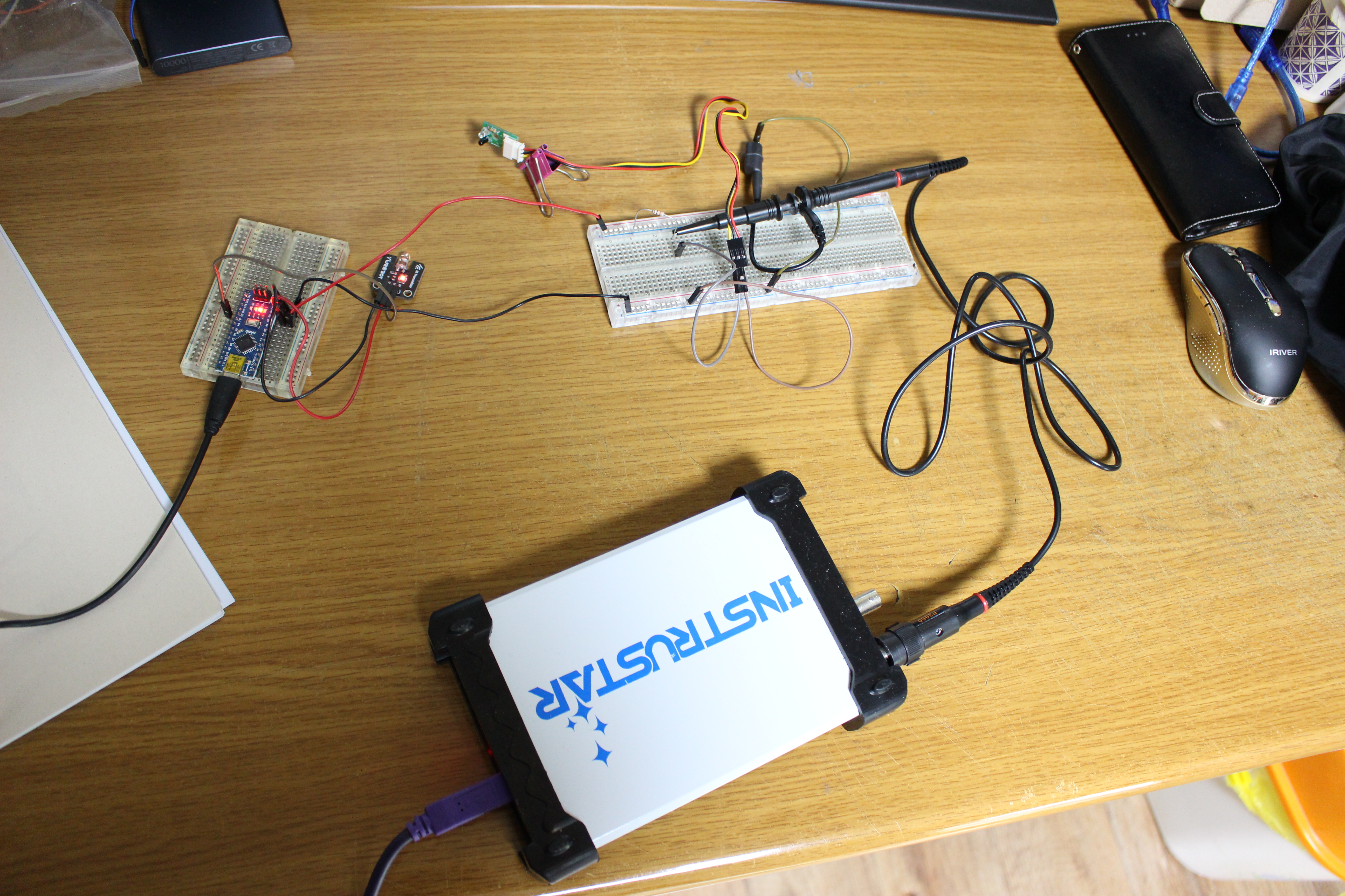 적외선을 눈으로 보기-1에서 시간지연이 발생하여 LED가 켜지는 위치가 어긋나는 문제를 해결하기 위해 시도한 내용을 소개합니다. 결론적으로 위치가 어긋나는 문제는 해결하지 못했고, 적외선의 강도에 따라 LED의 밝기가 달라지는 개선이 있었습니다. 아래에 과정을 소개합니다. 적외선을 눈으로 보기는 이 정도로 하고 다음 주제로는 소리를 눈으로 보는 좀 더 어려운 과제를 하려고 합니다.