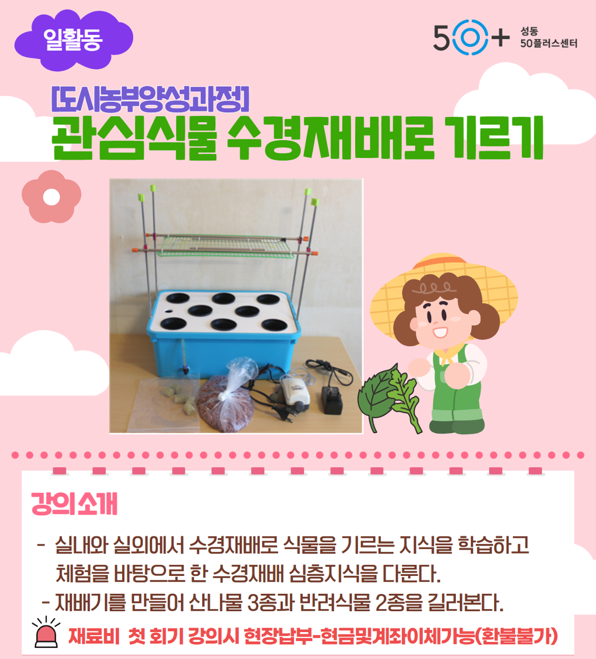 이후 수경재배기 만들기, 수경재배 자동화 등에 관한 과정도 준비 중이니 계속 관심 가져 주세요.