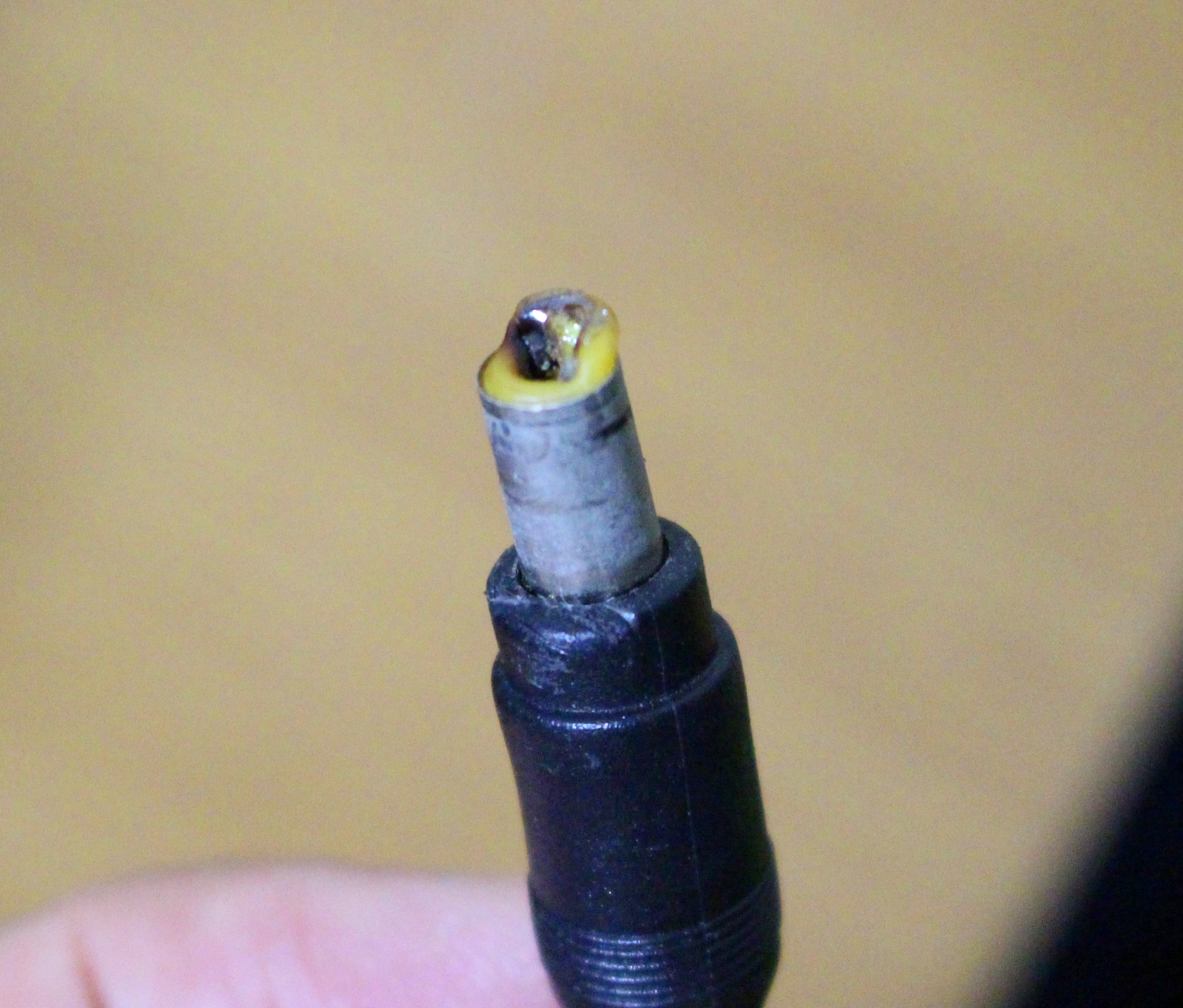플러그를 빼 보니 일부가 녹아 있었다. 플러그의 금속이 얇아 보였다. 전류를 감당하지 못해 열이 난 것 같다.