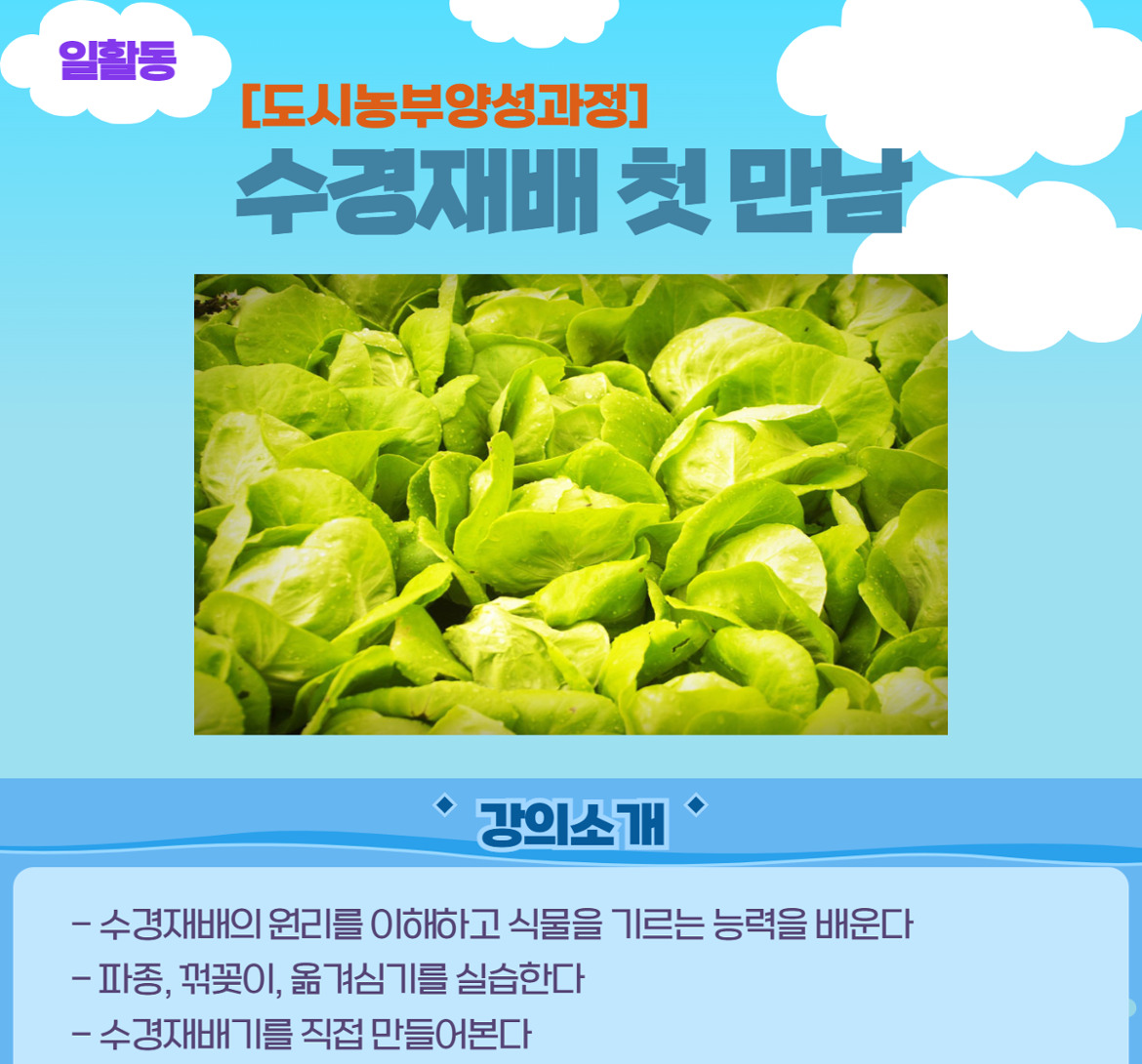 | 성동50플러스센터 "수경재배 첫 만남" 2023년 2기 (0) | 2024.07.08 |
