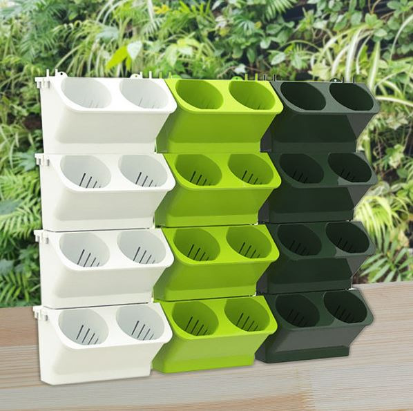 벽걸이화분은 멀티 벽걸이 화분(MP-04)을 사용하기로 했다. 이것은 장충동작은도서관 그린월에 사용한 경험이 있다. 나사못으로 벽에 박을 수도 있고, 지지물에 걸칠 수도 있다. 성동50플러스센터에서는 막대자처럼 생긴 알루미늄 막대를 가로로 고정한 후, 알루미늄 막대에 걸치는 방법을 사용했다.