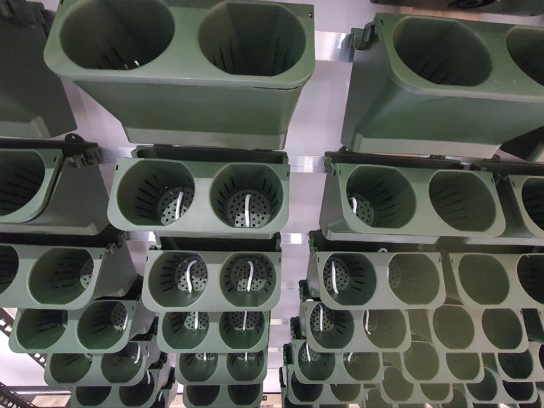 벽걸이 화분을 걸 때 기둥에 위치하는 열을 우선 배치하고, 나머지 열은 적당히 간격을 맞출 수 있도록 했다. 10층이 11열로 구성되어 있어 총 110개의 벽걸이 화분이 들어간다. 벽걸이 화분 1개에 일반 화분 2개가 들어가므로 구입해야 하는 화분은 총 220개가 된다.