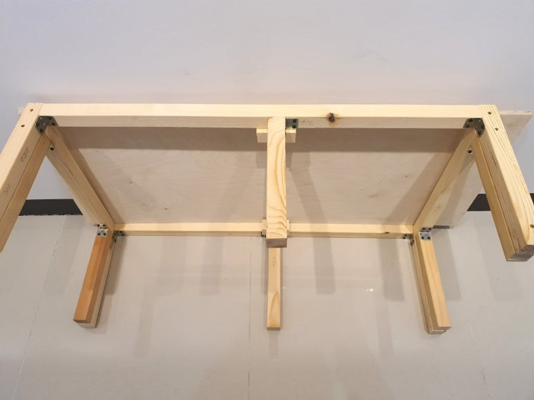 - 다리를 덧붙였다. 판 위에 사람이 올라가서 작업할 때에 충분히 튼튼하게 받칠 수 있도록 다리를 덧대어 붙였다.