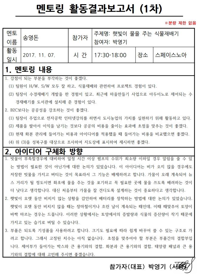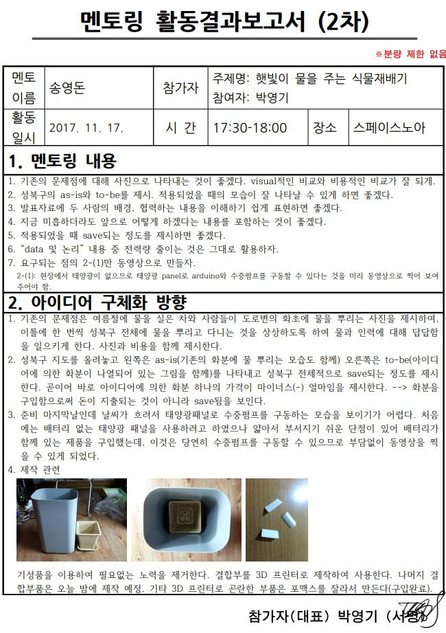 2017년 11.07에 1차 멘토링을 받고 다음날 멘토링 활동결과보고서를 냈다.