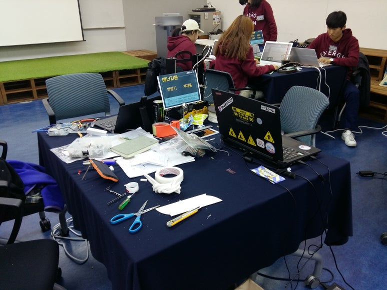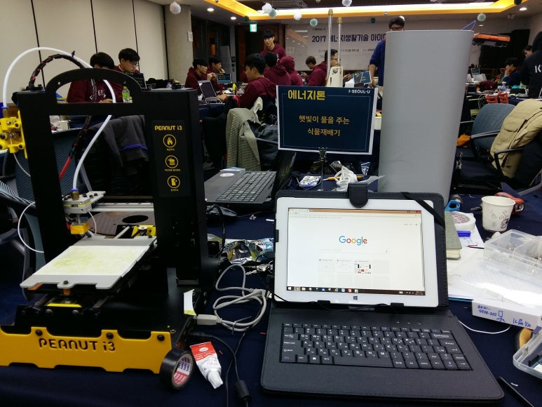 주최측에서 3D 프린터를 충분히 제공하지 못한다고 해서 집에서 3D 프린터와 태블릿 PC를 가져갔다.