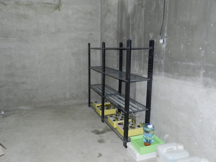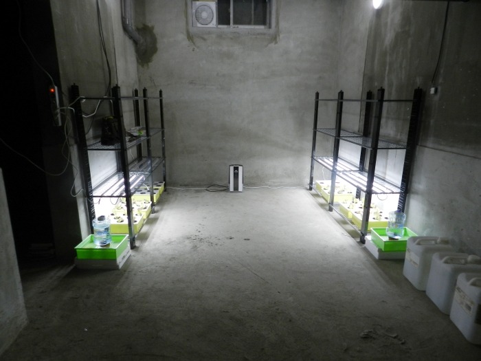 답사 했을 때의 모습입니다. 버섯 재배를 위해 선반이 설치되어 있고 제일 아랫층에 수경재배를 할 계획입니다.