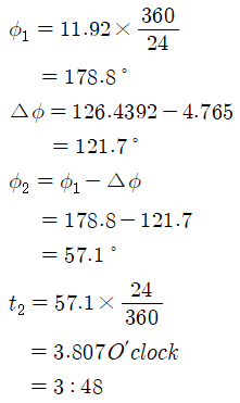 이를 이용하면 스키폴 공항의 경도는 태양 반대편 기준 57.1도인 곳에 있다.