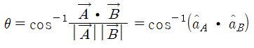 벡터의 내적(inner product, or scalar product)을 이용하여 두 벡터 사이의 각을 구할 수 있다.