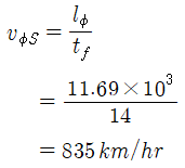 지구에서 보았을 때는 지구 밖에서 본 위선과 평행한 속도에서 지구의 선속도를 빼서 구할 수 있다.