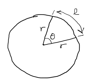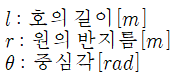 원에서 부채꼴의 호의 길이는 원의 반지름과 중심각의 곱으로 구할 수 있다. 이때 중심각은 라디안(radian) 단위이다.