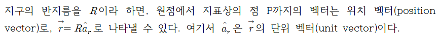 - 지구는 완전한 구라고 가정했고 평균반지름을 적용했다. 실제로는 적도의 반지름이 극반지름보다 크다.