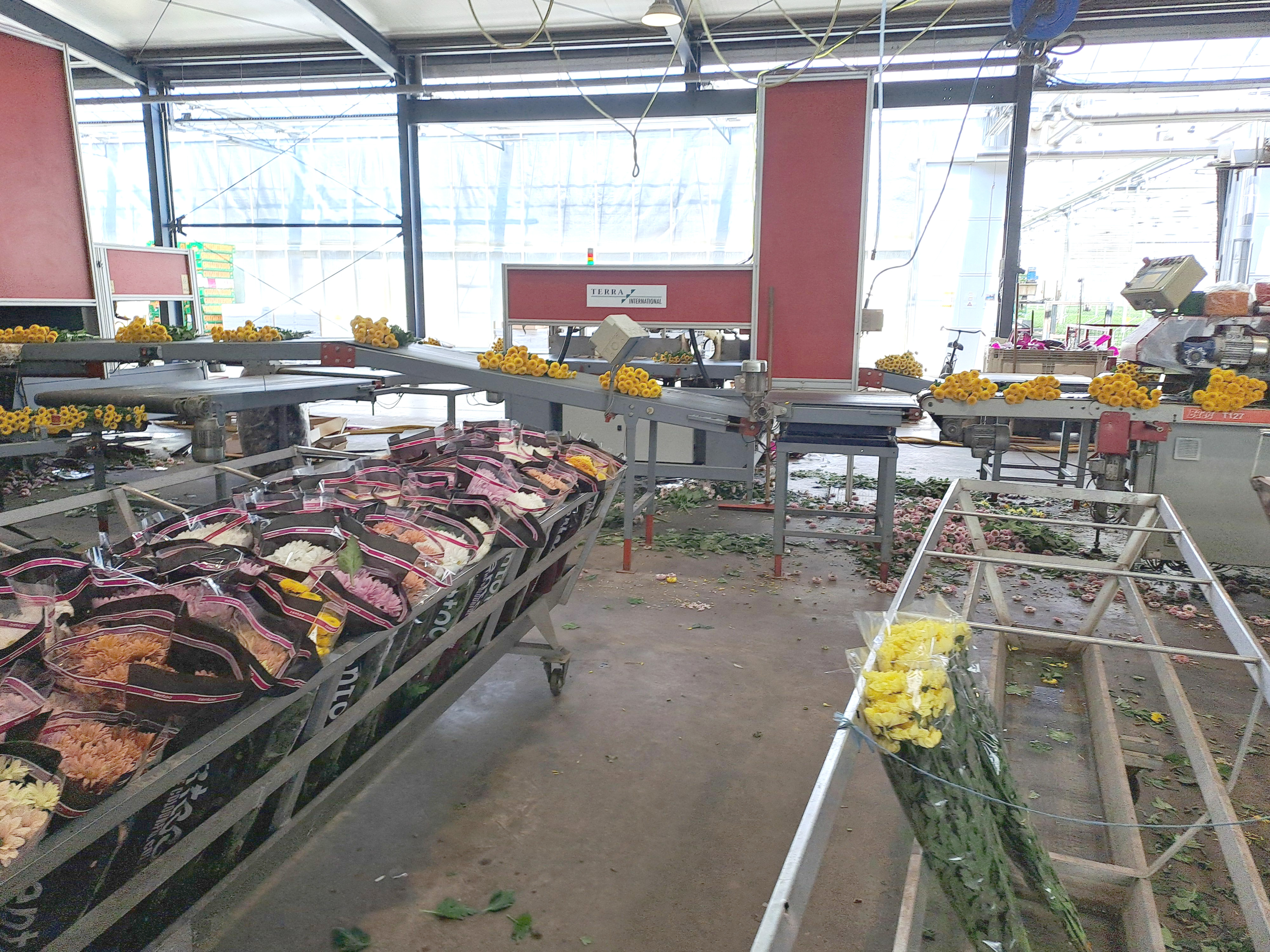 지하 컨베이어 벨트를 타고 온 국화는 포장하는 공간으로 들어온다. 사진에서 가까운 곳으로부터 먼 곳으로 운반된다.