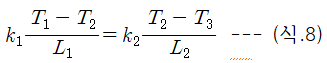 (식.7)과 (식.8)은 T1, T2, T3인 미지수 3개를 갖고 식이 2개인 연립방정식이다. T1을 양액의 목표 온도로 잡으면 미지수가 2개로 줄어들어 풀 수 있다.