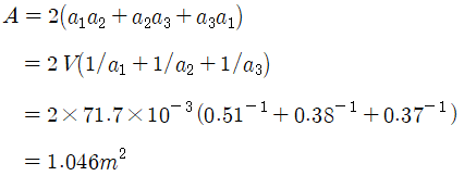 양액저장조의 표면적은 부피와 가로 길이, 세로 길이, 높이로 다음과 같이 구할 수 있다.