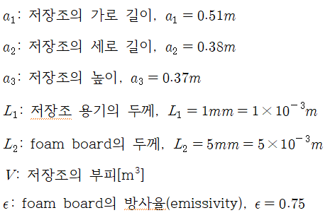 성동50플러스센터의 식물재배기 개조를 맡게 되었다. 온도 조절 기능이 없는 재배기라 개조하면서 온도 조절 기능을 추가하기로 했다. 일부를 DFT 방식을 적용하기로 하여 양액의 온도를 조절하기로 했다. 히터와 쿨러의 용량을 알아야 해서 대략적으로 히터의 용량을 계산해 보았다. 보온재가 없을 때는 히터의 전력이 커서 폼보드로 보온했을 때 어떠할지 다시 계산해 보았다.